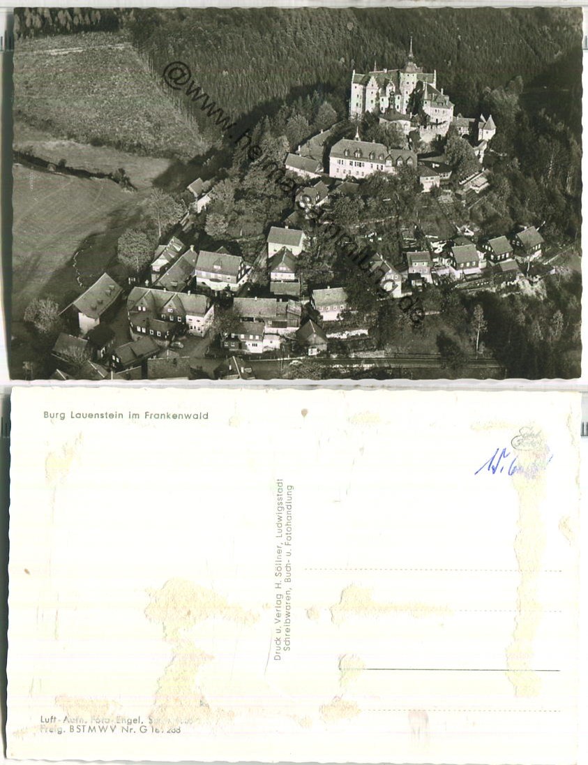Burg Lauenstein im Frankenwald - Luftaufnahme - Foto-Ansichtskarte - Verlag H. Söllner Ludwigsstadt - rückseitig Klebestellen (E86207y) |