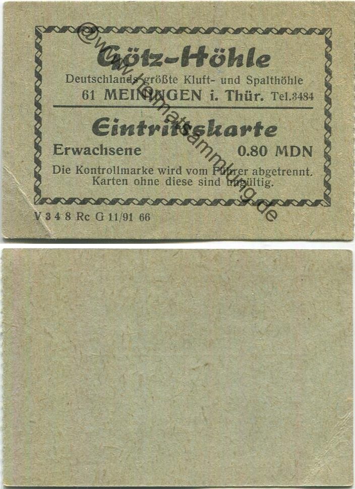 Meiningen in Thüringen - Götz-Höhle - Eintrittskarte 0.80 MDN (G62768y) |