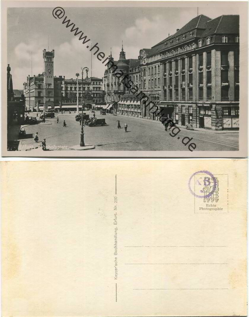 Erfurt - Bahnhofsplatz - Foto-AK 30er Jahre - Verlag Keyser'sche Buchhandlung Erfurt (E6347y) |