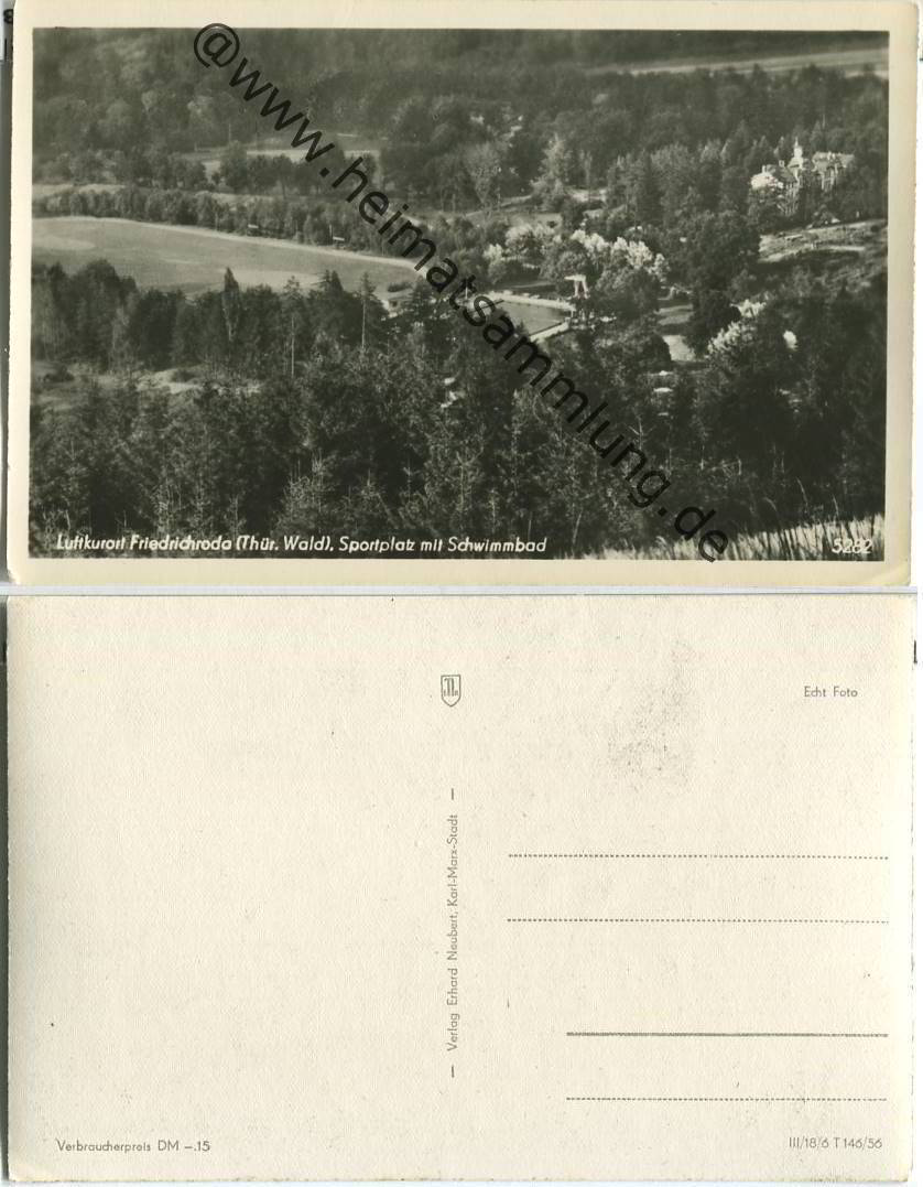 Friedrichroda - Sportplatz mit Schwimmbad - Foto-AK 50er Jahre (G24609y) |