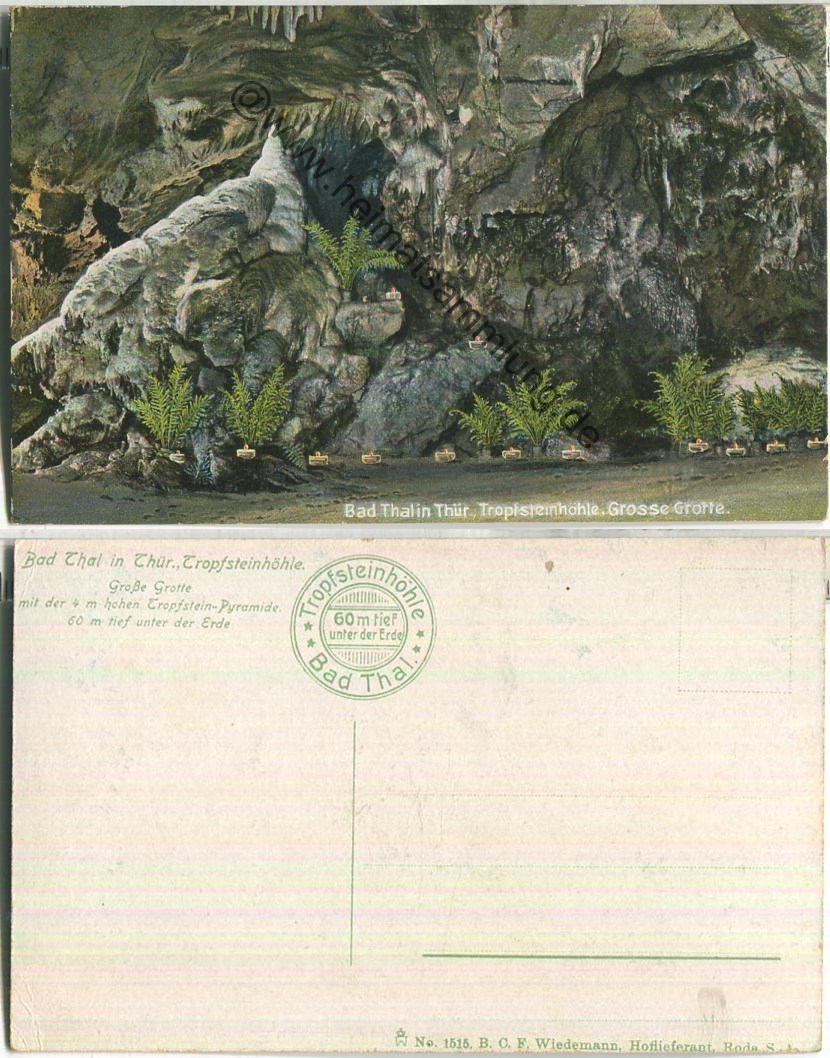 Bad Thal in Thüringen - Blick von der Tropfsteinhöhle mit Ruine Scharfenburg - Verlag B. C. F. Wiedemann Roda - Gebrauchsspuren - Eckknick oben links (G19534y)