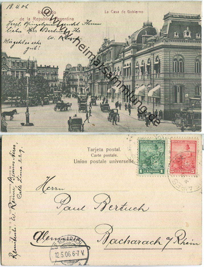 Recuerdo de la Republica Argentina - La Casa de Gobierno - Verlag R. Rosauer Rivadavia (G50983y) |