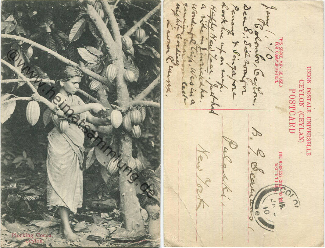 Ceylon - Sri Lanka - Plucking Cocua - Kakao Ernte - Gebrauchsspuren - Eckknicke - Briefmarke entfernt (E17234y) |