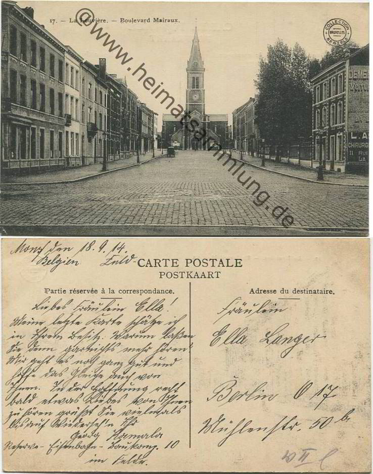 Wallonie - La Louviere - Boulevard Mairaux - Rückseite beschrieben 1914 (E11009y) |