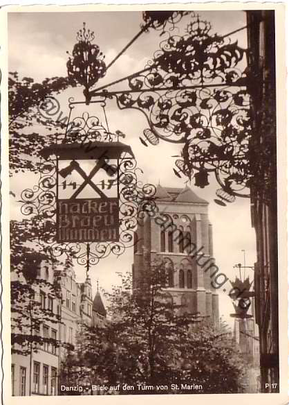 Danzig - Turm von St Marien - Schild Hacker Braeu München - Foto-AK Grossformat - Verlag Foto Sönnke Danzig (E31890) |