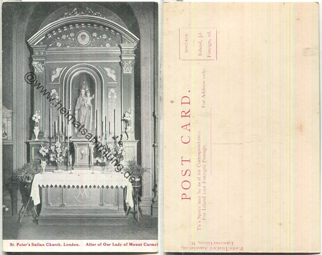 St. Peter 's Italian Church London ca. 1910 - Altar of Our Lady of Mount Carmel (E86265y) |