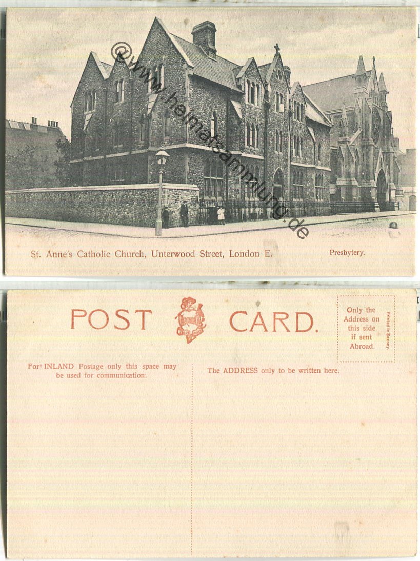 St. Anne 's Catholic Church - Presbytery - Unterwood Street London ca. 1910 (E86270y) |