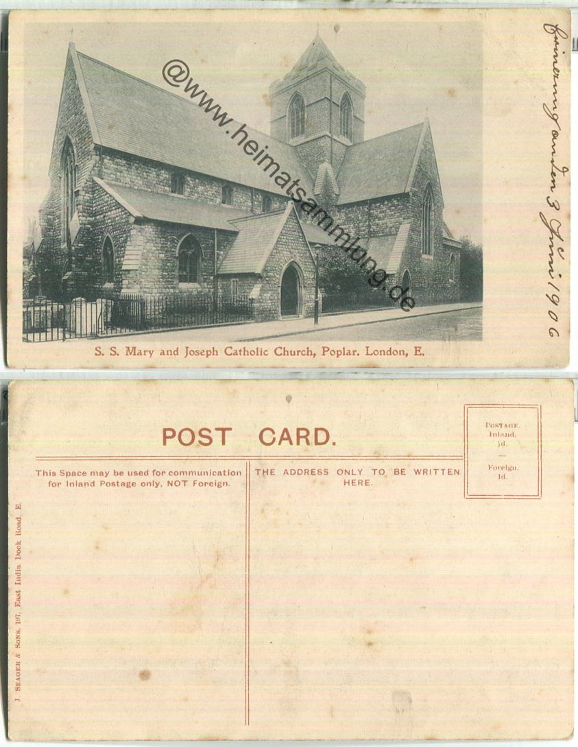 S. S. Mary and Joseph - Catholic Church Poplar London 1906 - leichte Gebrauchsspuren (E86272y) |