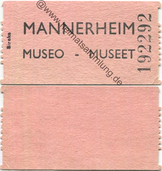 Helsinki - Mannerheim Museo Museet - Eintrittskarte (G61062y) |