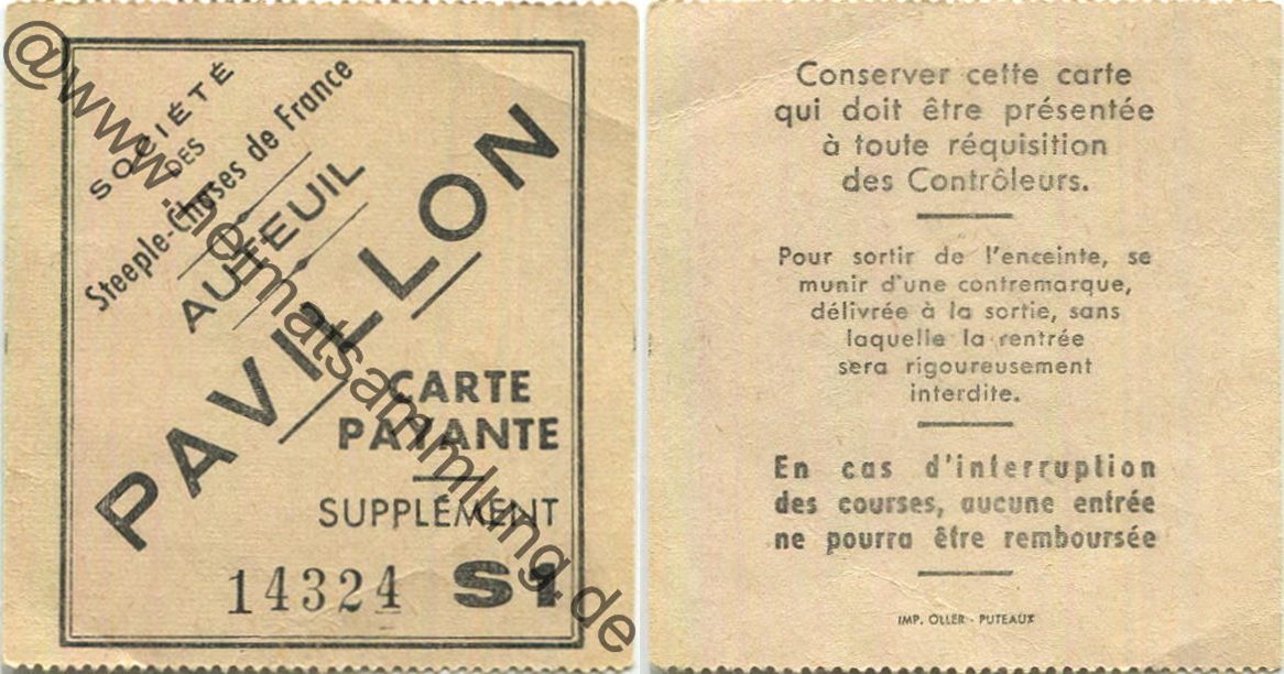 Societe des Steeple-Chases de France - Auteuil - Pavillon - Carte