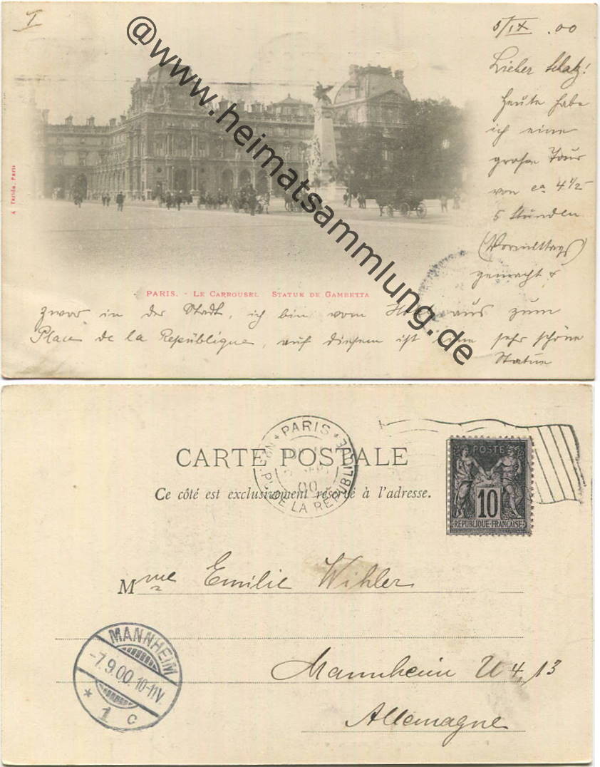 Paris - La Carrousel - Statue de Gambetta - Edition A. Taride Paris - Flaggenstempel (G51475y) | gel. 1900 | EUR 7,00 |