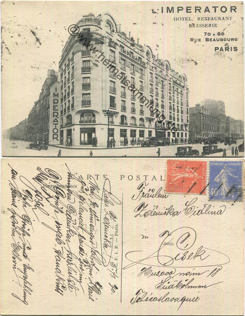 Paris - Hotel L Imperator - Rue Beaubourg - Gebrauchsspuren (E34787y) | gel. 1930 | EUR 7,00 |