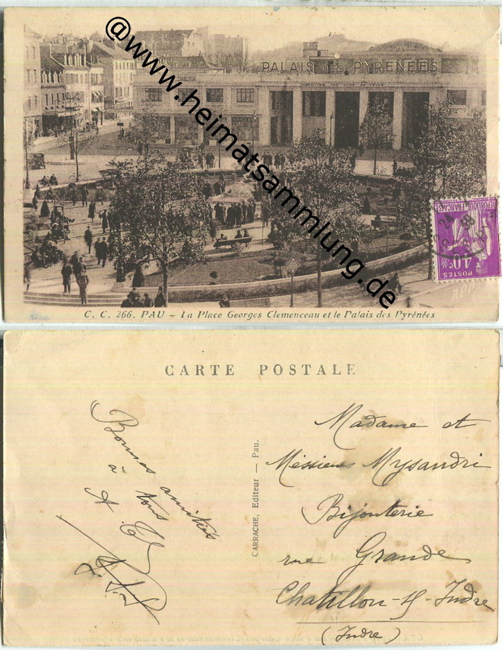 Pau - L'Avenue Leon-Say - Rückseite beschrieben 1919 (E53786) |