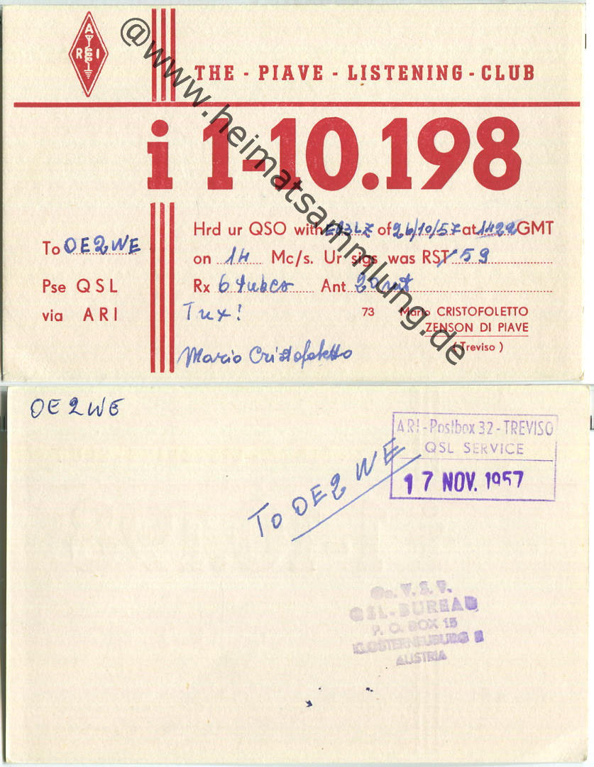 QSL - QTH - Funkkarte - I1-10.198 - Italy - Zenson di Piave - 1957 (G37853y) |