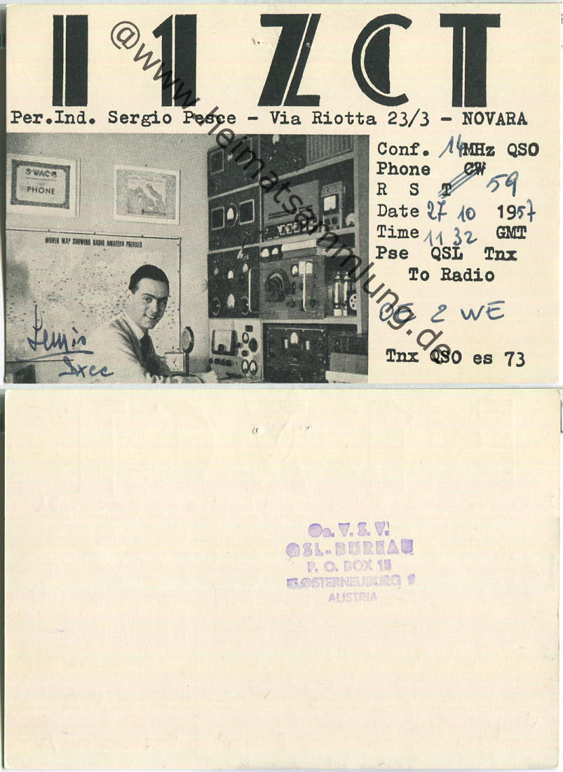 QSL - QTH - Funkkarte - I1ZCT - Italy - Novara - 1957 - Nadelloch (G37854y) |