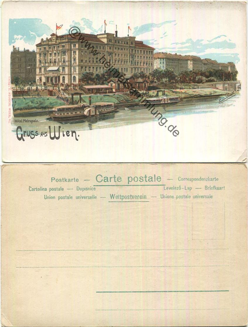 Wien I/1. - Hotel Metropole - Künstlerkarte Erwin Pendl - Verlag E Storch Wien ca. 1900 - Gebrauchsspuren (E34915y) |