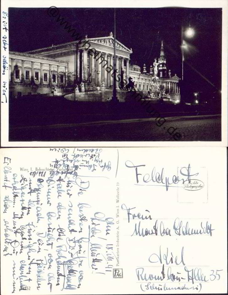 Wien - Beleuchtetes Parlament - Foto-Ansichtskarte - Verlag Postkarten Industrie AG Wien - Rückseite beschrieben Feldpost (G12533y) |