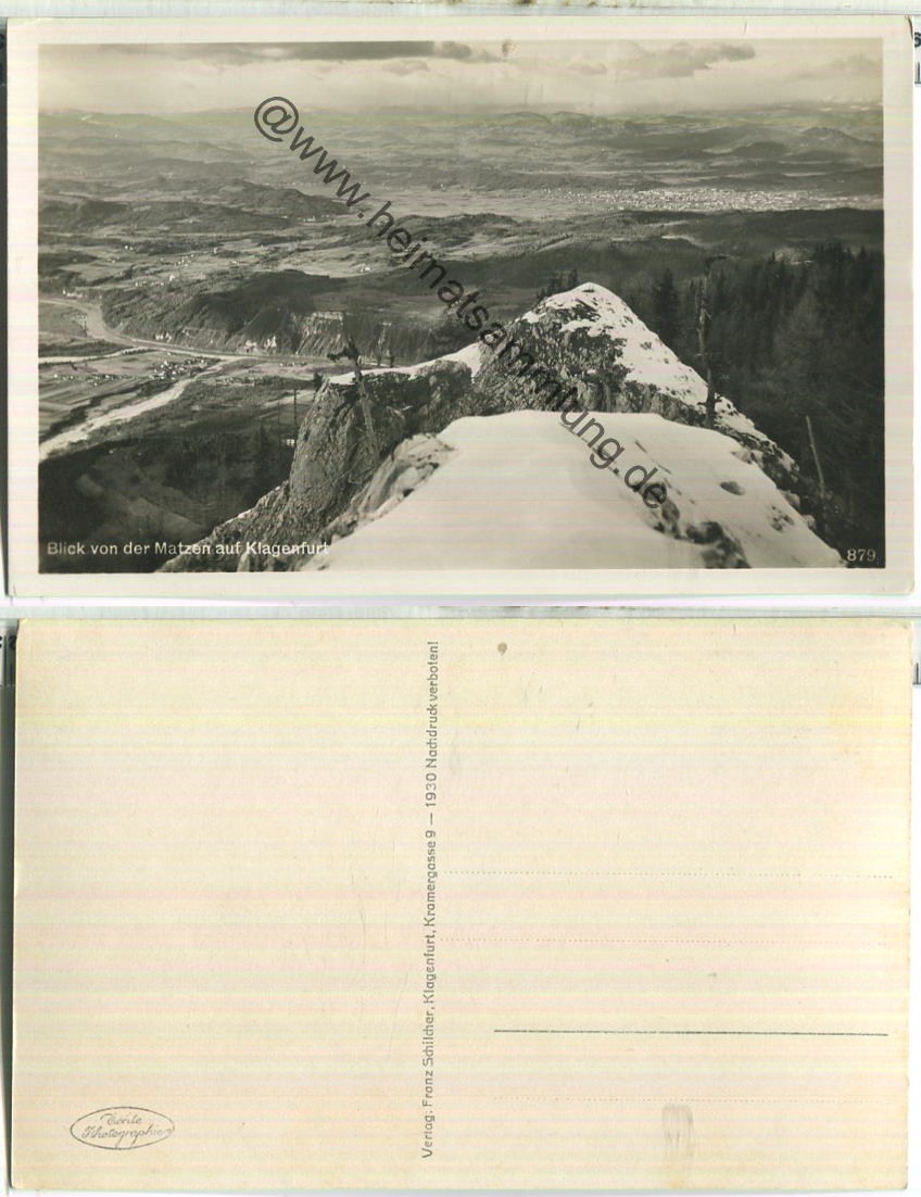Blick von der Matzen auf Klagenfurt - Foto-Ansichtskarte - Verlag Franz Schilcher Klagenfurt 1930 (E85701y) |