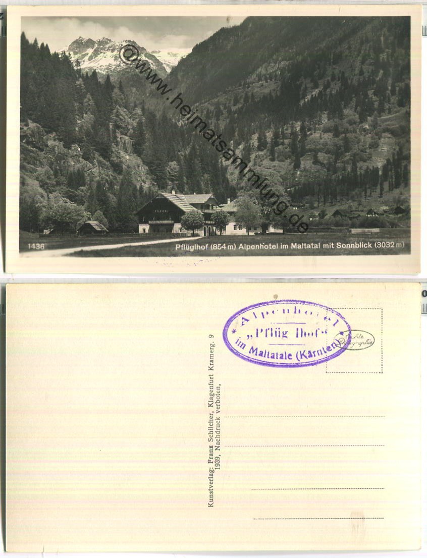Pflüglhof - Alpenhotel im Maltatal mit Sonnblick - Foto-Ansichtskarte - Verlag Franz Schilcher Klagenfurt 1939 (E85711y) |