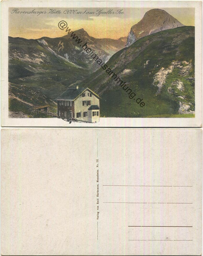 Ravensburger Hütte am Spuller See - Verlag Emil Hartmann Mannheim (E34930y) |