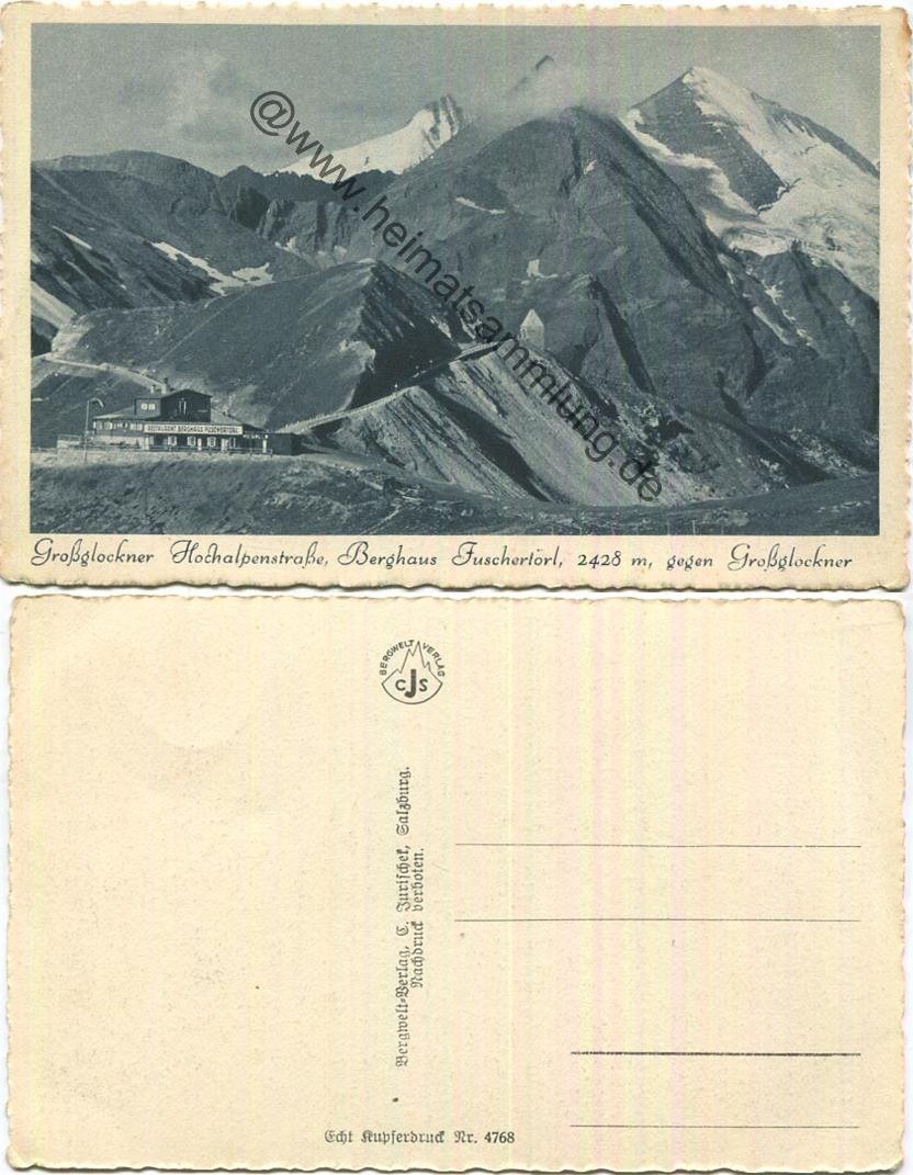 Grossglockner-Hochalpenstrasse - Berghaus Fuschertörl mit Grossglockner - Sonnenwelleck und Fuschertörl - Foto-Ansichtskarte - Verlag Brüder Lenz Dobl 1937 (E95064y) |