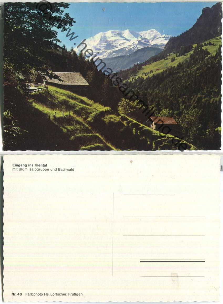 Eingang zum Kiental mit Blümlisalpgruppe und Bachwald - Verlag Hs. Lörtscher Frutigen (E85971) (N) |