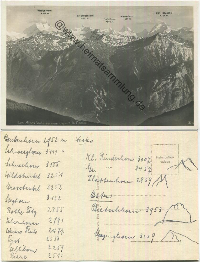 Les Alpes Valaisannes depuis la Gemmi - Foto-AK - Edition Perrochet Lausanne - Rückseite beschrieben (E35091y) |