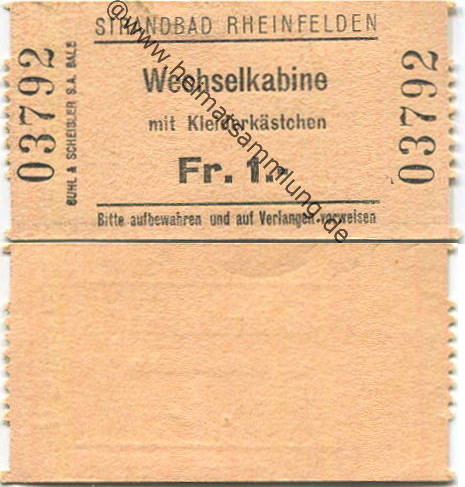 Rheinfelden - Strandbad - Wechselkabine mit Kleiderkästchen - Eintrittskarte (G59544y) |