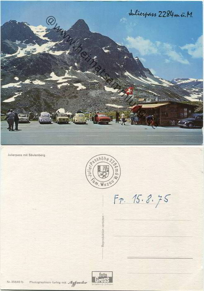 Julierpass - Foto-Ansichtskarte - Verlag Foto-Max St. Moritz - leichte Gebrauchsspuren - Einkerbung oben Mitte (G8392y) |
