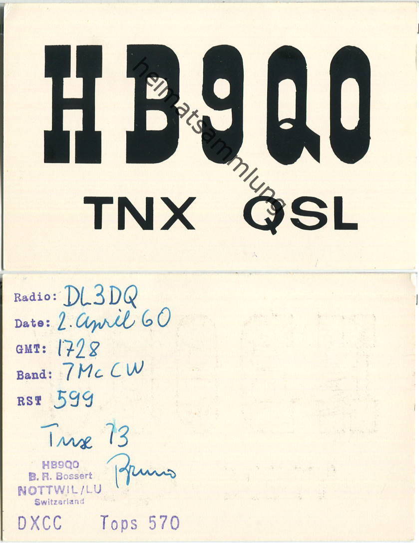 QSL - Funkkarte - HB9QO - Switzerland - Nottwil - 1960 (G29831y) |