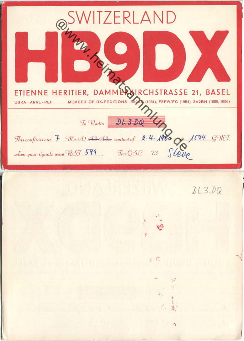 QSL - Funkkarte - HB9DX - Switzerland - Basel - 1960 (G29841y) |