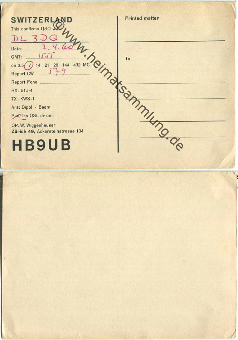 QSL - QTH - Funkkarte - HB9UB - Switzerland - Zürich - 1960 (G29896y) |
