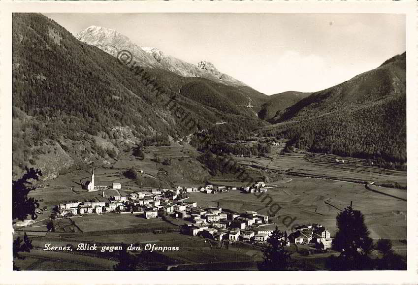 Zernez - Blick gegen Ofenpass - Verlag Grass Zernez - Rückseite beschrieben (E75927) |