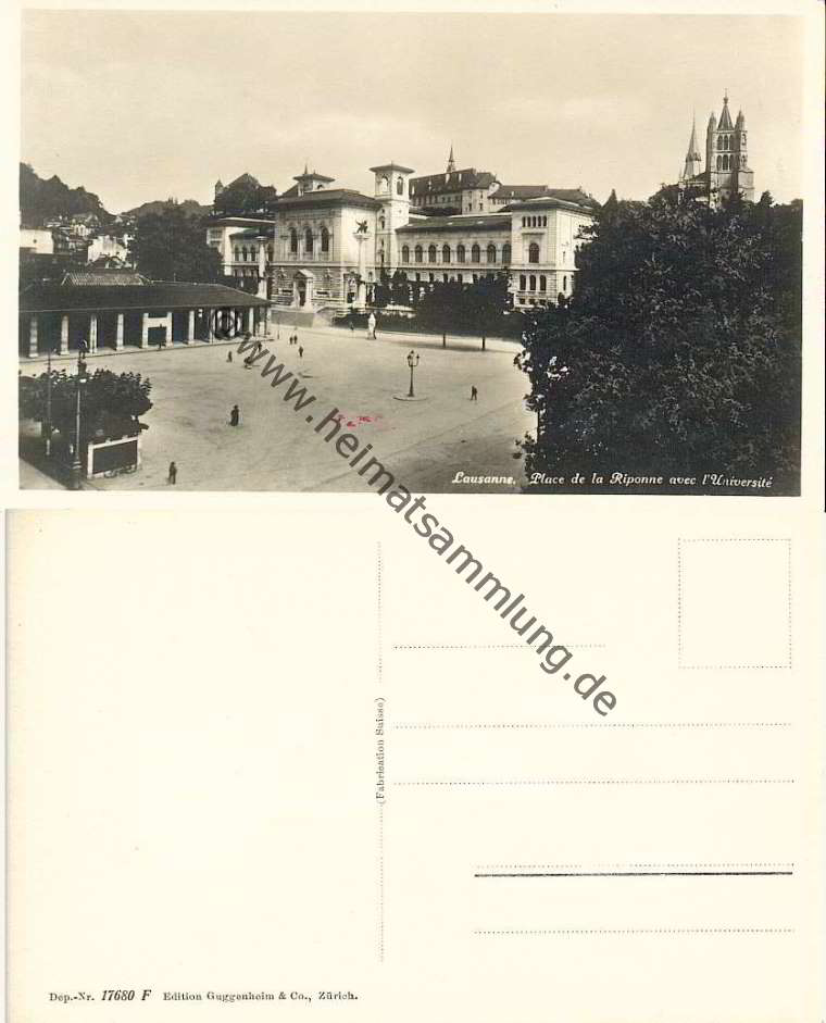 Lausanne - Place de la Riponne avec l'Universite - Foto-Ansichtskarte - Edition Guggenheim & Co. Zürich - leichte Gebrauchsspuren (E90390y) |
