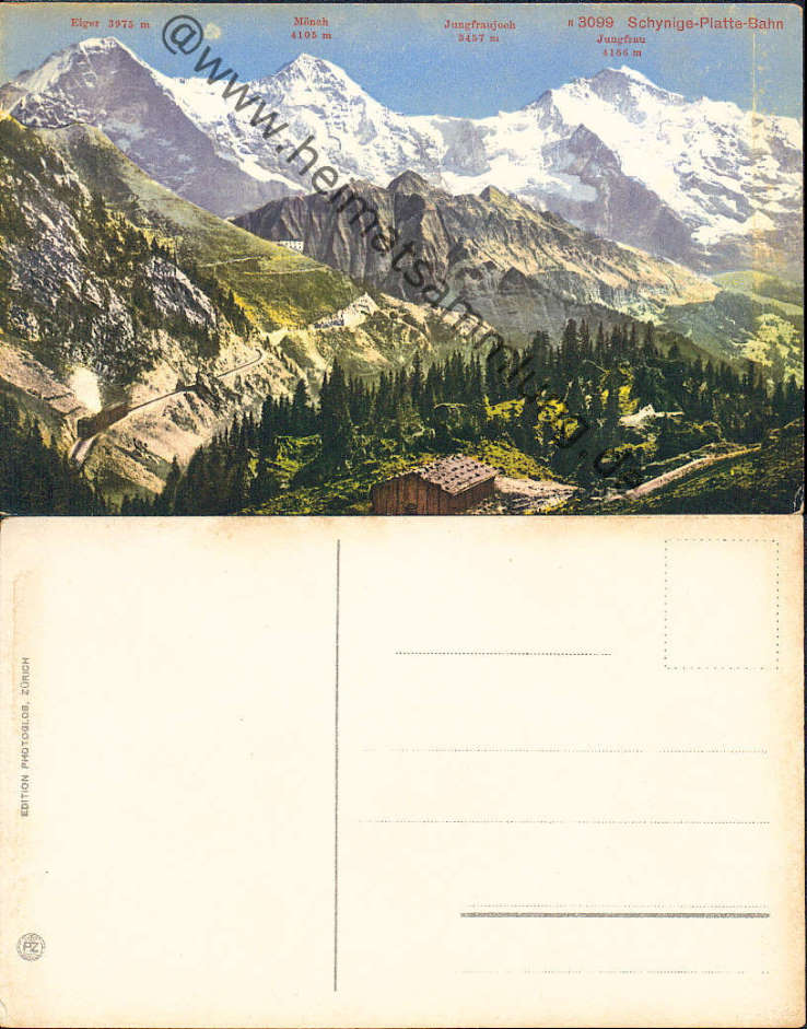Schynige Platte-Bahn - Eiger Mönch und Jungfrau - Edition Photoglob Zürich ca. 1905 (G10522y) |