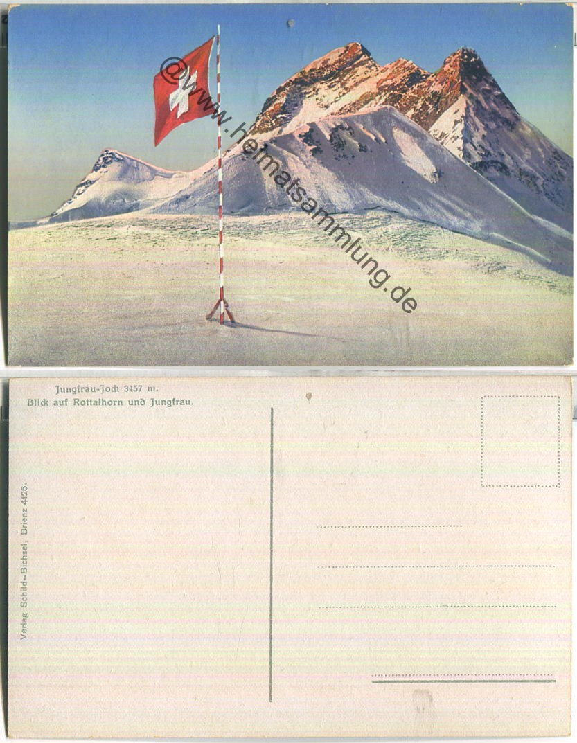 Jungfrau-Joch - Flagge - Blick auf Rottalhorn und Jungfrau - Verlag Schild-Bichsel Brienz (E86092y) |