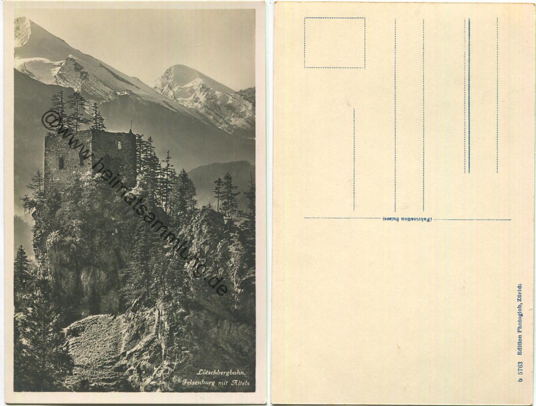 Lötschbergbahn - Felsenburg mit Altels - Foto-AK - Verlag Photoglob Zürich (E48085y) |