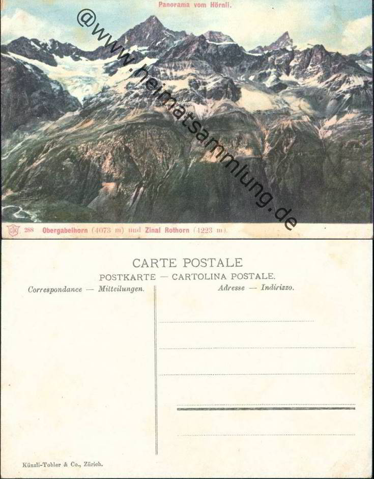 Panorama vom Hörnli - Obergabelhorn und Zinal Rothorn ca. 1910 - Verlag Künzli-Tobler & Co. Zürich (G20639y) |