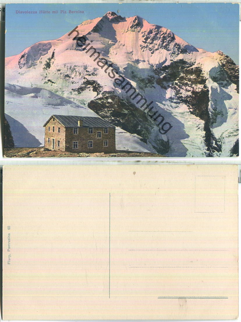 Diavolezza Hütte mit Piz Bernina - Verlag Flury Pontresina (E86047y) |