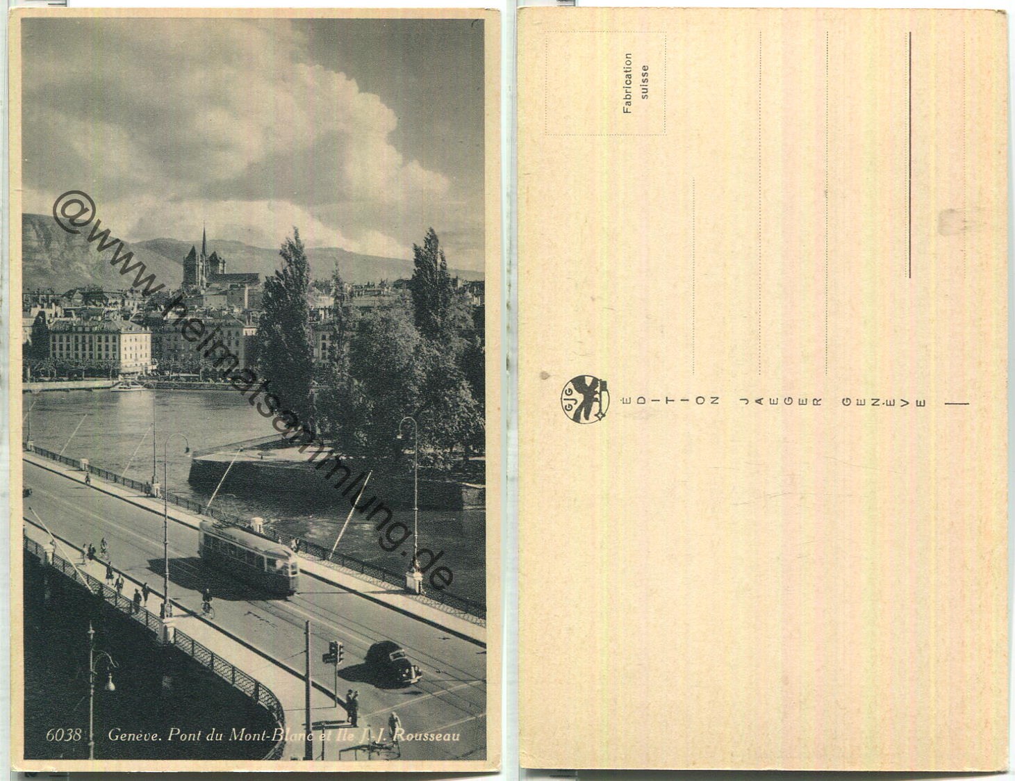 Geneve - Pont du Mont-Blanc et Ile J. J. Rousseau - Strassenbahn - Edition Jaeger Geneve (E85999y) |