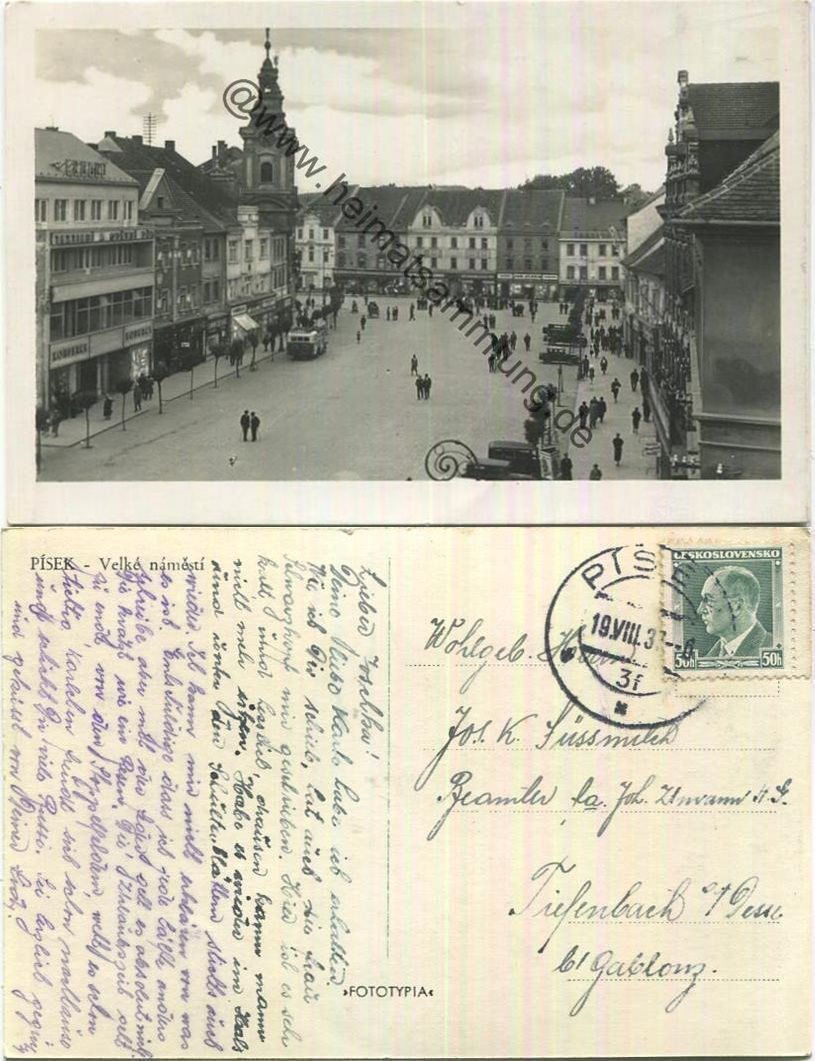 Pisek - Foto-AK - Nakl. Jan Thorovsky Pisek - Briefmarke entfernt (E3994y) |