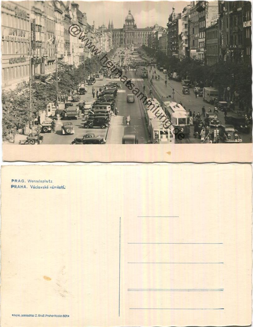 Prag - Wenzelsplatz - Strassenbahn - Rückseite beschrieben 1943 (E39876y) |